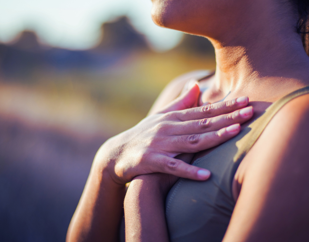 Place a hand on your heart or belly and take a few slow breaths. The warmth and steady pressure of your own touch can be deeply regulating. In moments of overwhelm, this simple gesture reminds the body: